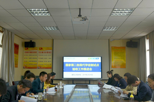 3月29日上午,建筑工程学院组织召开国家第二批现代学徒制试点验收工作推进会。项目组全体成员参加会议。