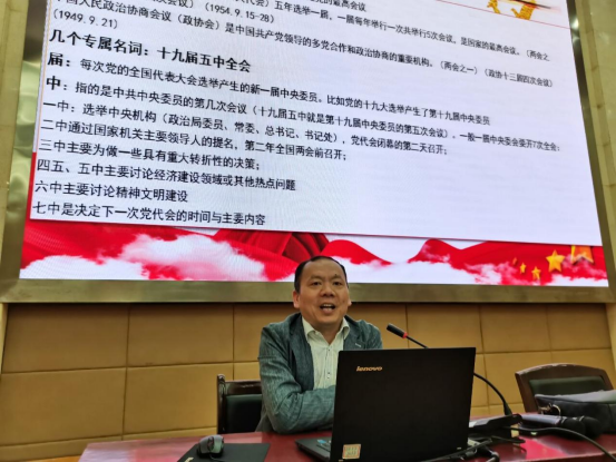 5月18日,信息技术学院院长王保成为全体入党积极分子全面解读了党的十九届五中全会精神。