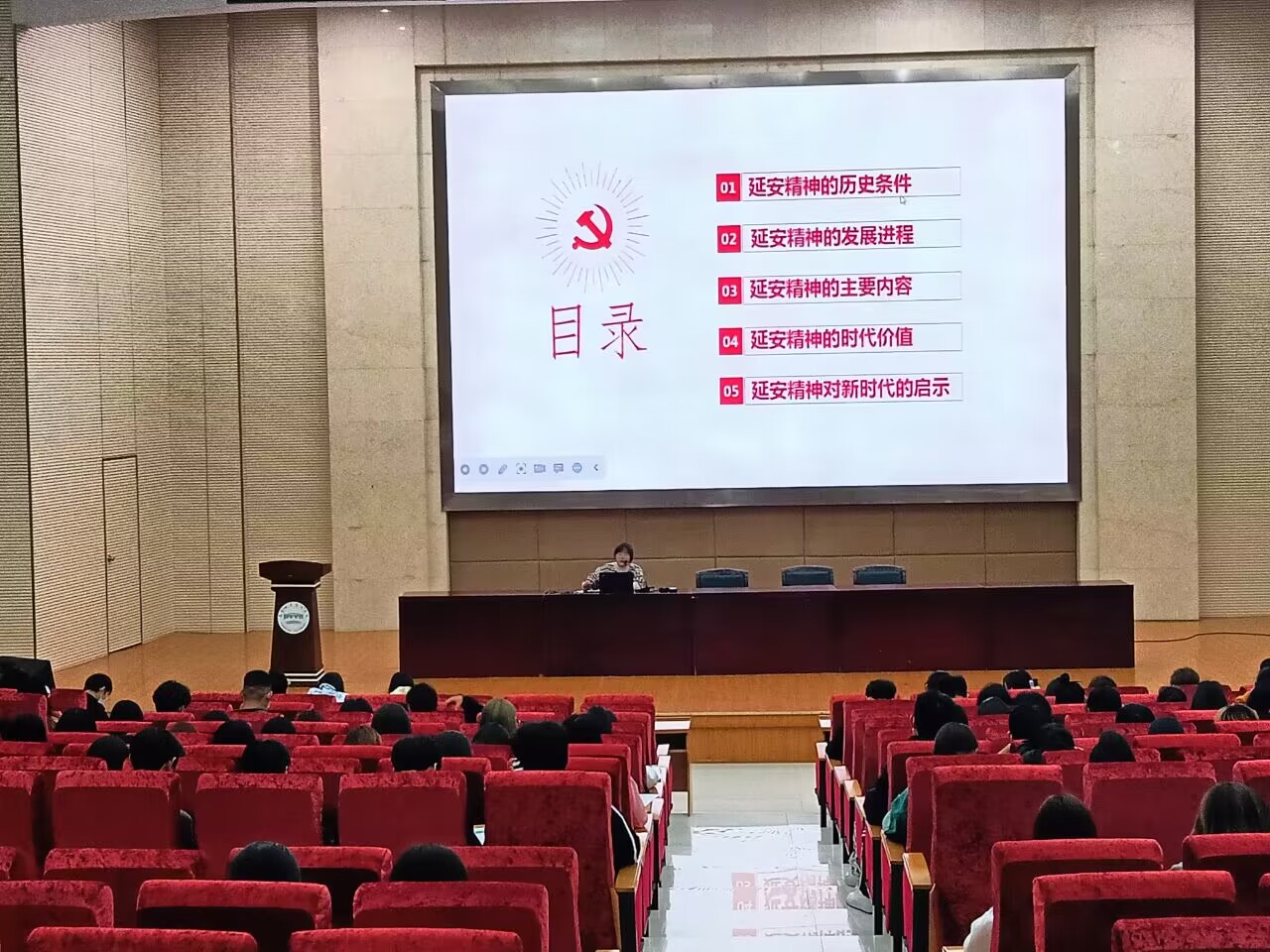 赵雪老师从延安精神的历史条件、发展进程、主要内容、时代价值和延安精神对新时代的启示五个方面,为同学们全面解析了延安精神,并通过大量的图片和视频生动诠释了新时代继承和发扬延安精神的重要意义。