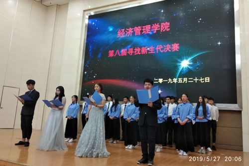 5月27日晚7点,经济管理学院在图书馆二号学术报告厅举办第八届“寻找新生代”决赛。院党总支书记方基志,副院长葛峰、唐卫东、刘晓斌,教授申长永、学工科梁光源老师担任评委。