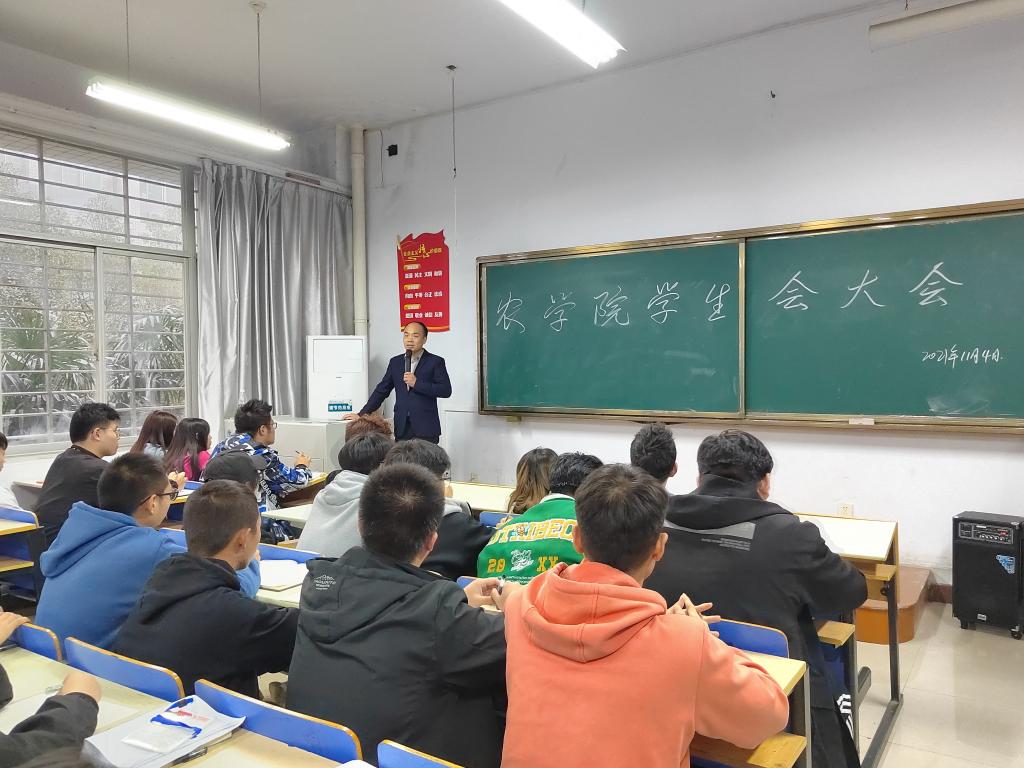 11月4日下午,农学院在健行楼N25教室召开学生干部正风肃纪大会。学工副院长陈杰军主持会议,全体学生干部及各班班长参加会议。