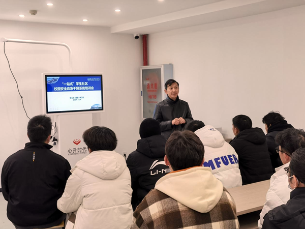 2月28日晚,学工处在“一站式”学生社区开展校园安全应急干预系统培训会。校学生会、校团委共50名学生干部参加培训。