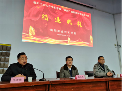 12月29日下午,襄阳市中职学校校长及“双师”素质教师培训在明志楼一楼报告厅举办结业典礼。市教育局中小学教师继续教育中心主任陈兴明、信息技术学院党总支书记汤才虎、汽车工程学院院长程洪涛等出席活动。