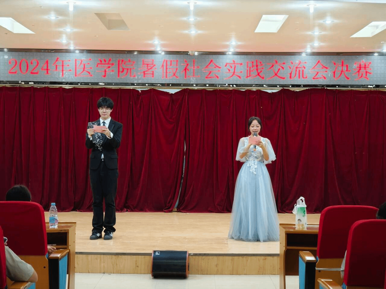 为帮助学生将理论知识转化为实践能力,提升学生的综合素质和社会责任感,为未来的职业发展奠定坚实的基础,医学院组织学生利用暑假全面开展了社会实践活动。9月25日晚,医学院在护理实训楼五楼学术报告厅举办“2024年暑假社会实践交流会决赛”。