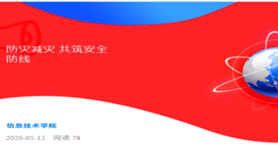 5月12日是第十二个国家防灾减灾日。信息技术学院围绕防溺水、用电安全、网络安全、饮食安全等领域重点开展宣传教育。