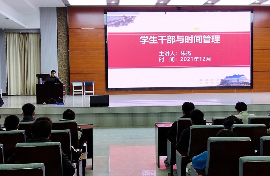12月9日晚,汽车工程学院开启2021年“青马工程”学生干部培训第二讲。本次培训由学工科朱杰老师主讲,主题为“学生干部与时间管理”。