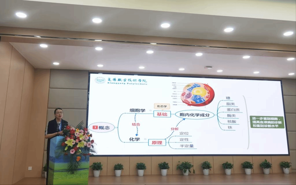 孙莉老师作为国家检验技能大师杨拓工作室成员之一,选择了医学检验技术专业核心课程《血液学检验技术》教学中的经典难题——“细胞化学染色”内容,并以PAS染色为例呈现了课堂示范。她使用思维导图,围绕“Why——How——What”三个关键词,分别介绍了PAS染色的名字由来/原理、操作过程和临床意义。现场提问环节气氛活跃。