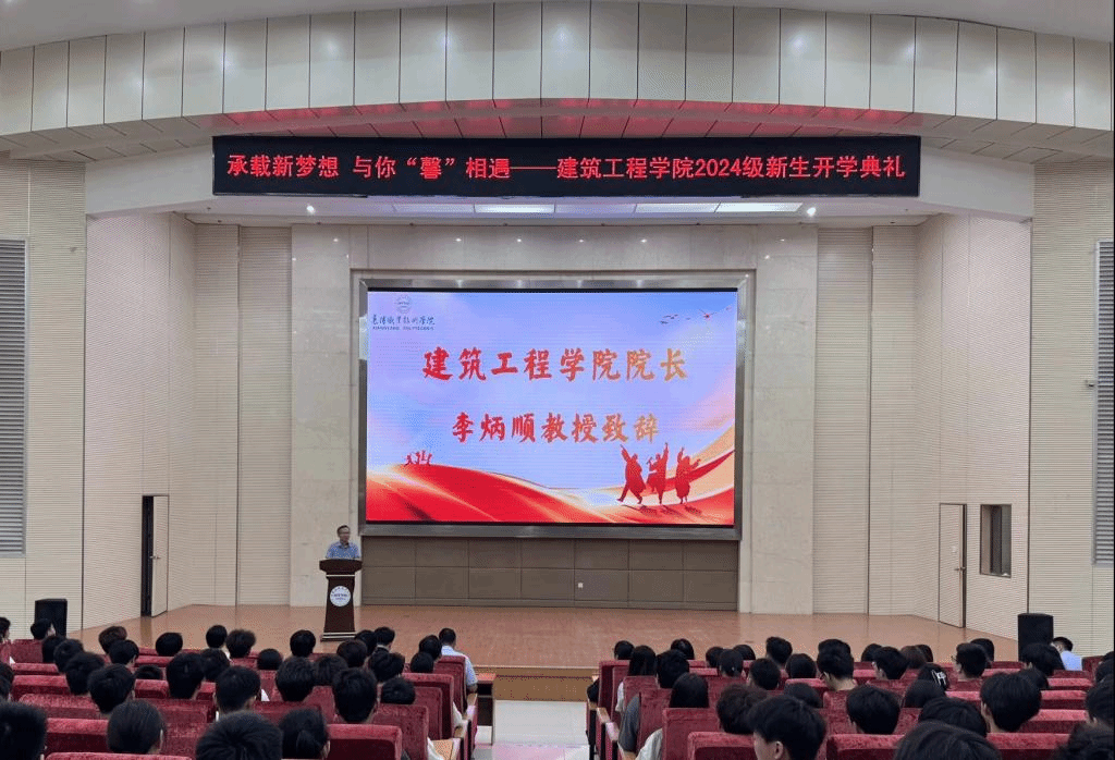 9月6日上午8点,建筑工程学院2024 级新生开学典礼在图书馆二号报告厅举行。建筑工程学院全体领导、教职工、新生班主任参加典礼。