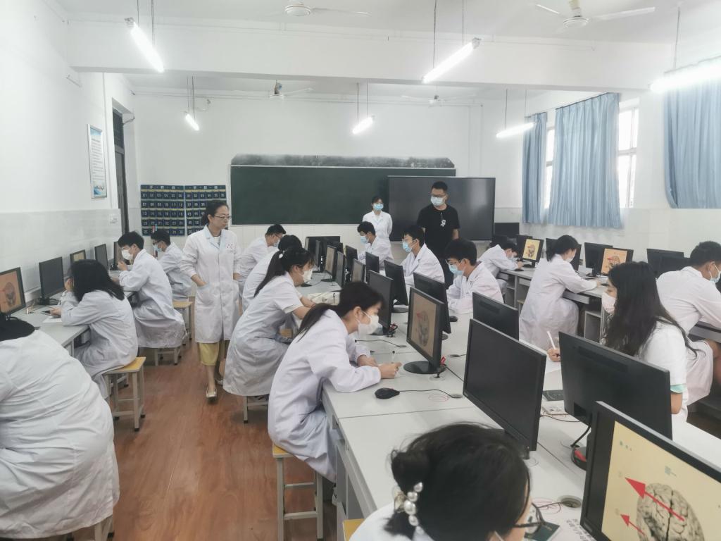 6月10日上午,医学院医学影像技术专业在电子阅片室进行《医学影像解剖学》期末技能抽考。此次技能考试从2022级学生中抽取20名,主要考核头部影像解剖,要求学生识别并写出解剖结构名称。本次技能考核邀请到中国人民解放军联勤保障部队第九九一医院放射科程言鹏医生进行考核评分。