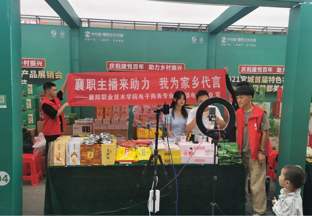 7月8日下午,商学院电子商务专业12名师生受宜城葛百岁葛业有限公司(校企合作单位)邀请,赴宜城市中农联鄂西北华农城参加2021年宜城特色农产品展销会暨楚都美食节。