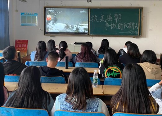全体学生集体观看了大型电视纪录片《英雄儿女》。该片讲述了中国人民志愿军的英雄人物和英雄故事,再现了全国人民万众一心,开展抗美援朝保家卫国运动的壮丽图景。观看完毕,学生们纷纷交流心得体会。旅游管理1901班褚冬莹同学表示:“作为一名00后,以前对抗美援朝的认识仅停留于课本知识,通过今天的观影,让我直观地感受到革命先烈为国家抛头颅、洒热血的伟大斗争事迹,使我深深为之震撼和感动。”旅游管理1902班薛魏雨同学表示:“当一位位志愿军前辈在镜头前描述当年的战争情景时,我感受到厚重的历史扑面而来,也让自己更加清醒地认识到,我们幸福的生活是革命烈士用鲜血和生命换来的。我们要学习和传承他们的精神,勇担时代重任,为实现中华民族伟大复兴而不懈奋斗。”