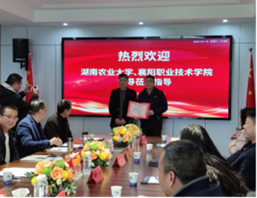 会上,湖北楚大鸭业有限公司与襄阳职业技术学院、湖南农业大学达成进一步深化校企合作意向,并聘请邬静教授为特聘专家。