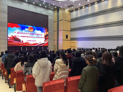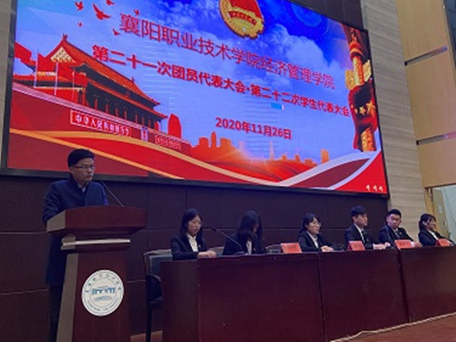 方基志致闭幕词,对当选学生表示祝贺,同时要求新一届团总支、学生会遵循《襄阳职业技术学院学行会改革实施方案》,自觉落实党领导下的“一心双环”团学组织格局,在未来的工作中取得更加优异的成绩。
