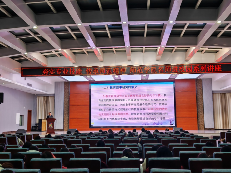 11月20日晚六点半,师范学院名师进校园师范生成长系列讲座“教育叙事——教师专业成长的助推器”在制造大楼A栋4楼报告厅成功开讲。市41中校长胡启胜在一个半小时的时间里,为小学语文教育专业的同学们带来了一堂丰富生动的专业成长课。小学语文教育和小学教育专业的青年教师参与此次活动。