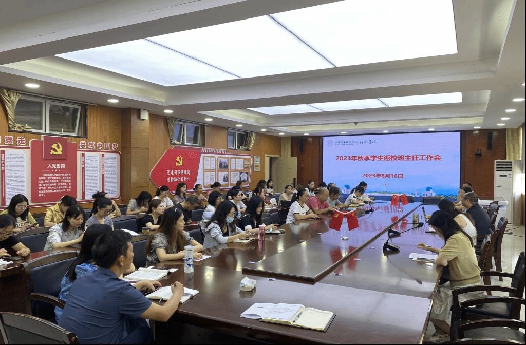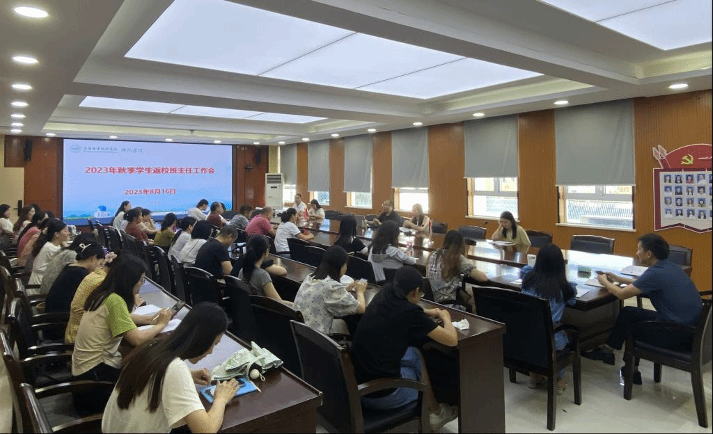 8月16日上午,师范学院在博爱楼四楼会议室召开2023年秋季学期学生返校工作部署会,师范学院党总支书记张丹,副院长彭建设、杨海曼,学工科、教务科人员及全体返校班级班主任参加会议。