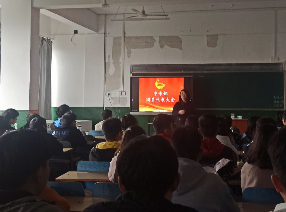 11月18日中午,中专部团员代表大会暨全国学联二十七大精神学习会在博学楼召开。