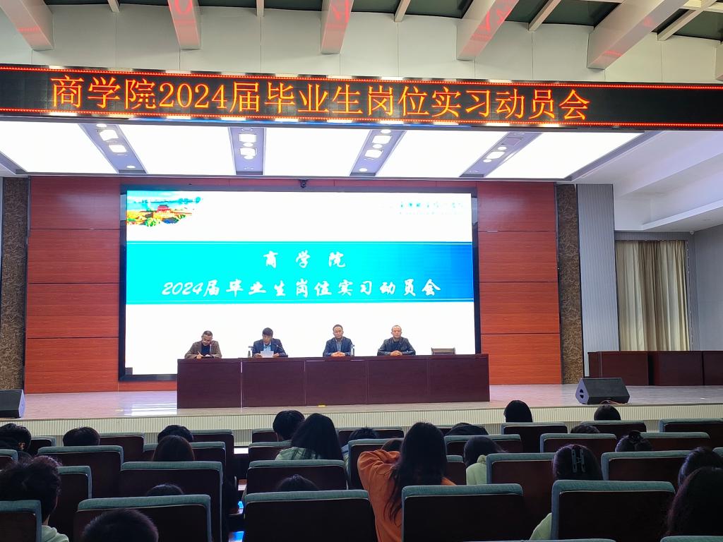 11月8日下午,商学院召开2024届毕业生岗位实习动员会。党总支书记王建宏、院长汪博兴,副院长唐卫东、梁光源、刘晓斌,各研究室主任及班主任等参加了本次会议。