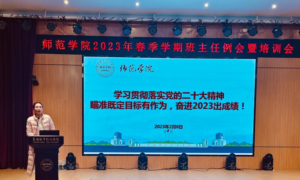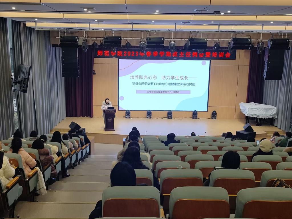 2月8日下午,师范学院在博学楼报告厅组织召开2023年春季学期班主任工作会议暨培训会。师范学院党总支书记张丹、学工院长彭建设、学工科科长张凤,以及全体学工人员和班主任参加会议。