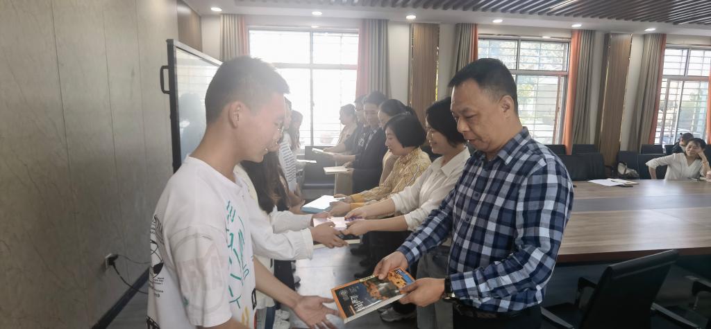 会上,公布了2023级党员陪伴成长结对名单,同学们一一和党员老师见面并互留联系方式。2021级和2023级同学共同点亮“星愿树”,即将走向企业实践岗位的2021级学长向2023级新生赠送“学习宝典”,并传授学习经验。结对党员教师向陪伴学生赠送书籍,鼓励他们多读书、读好书,养成爱读书的好习惯。最后,师生一同前往萧楚女广场参观2021级室内设计专业毕业设计展。