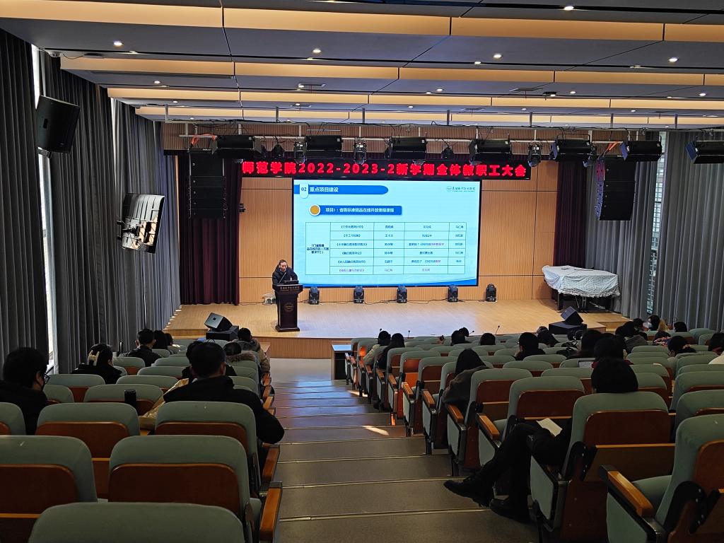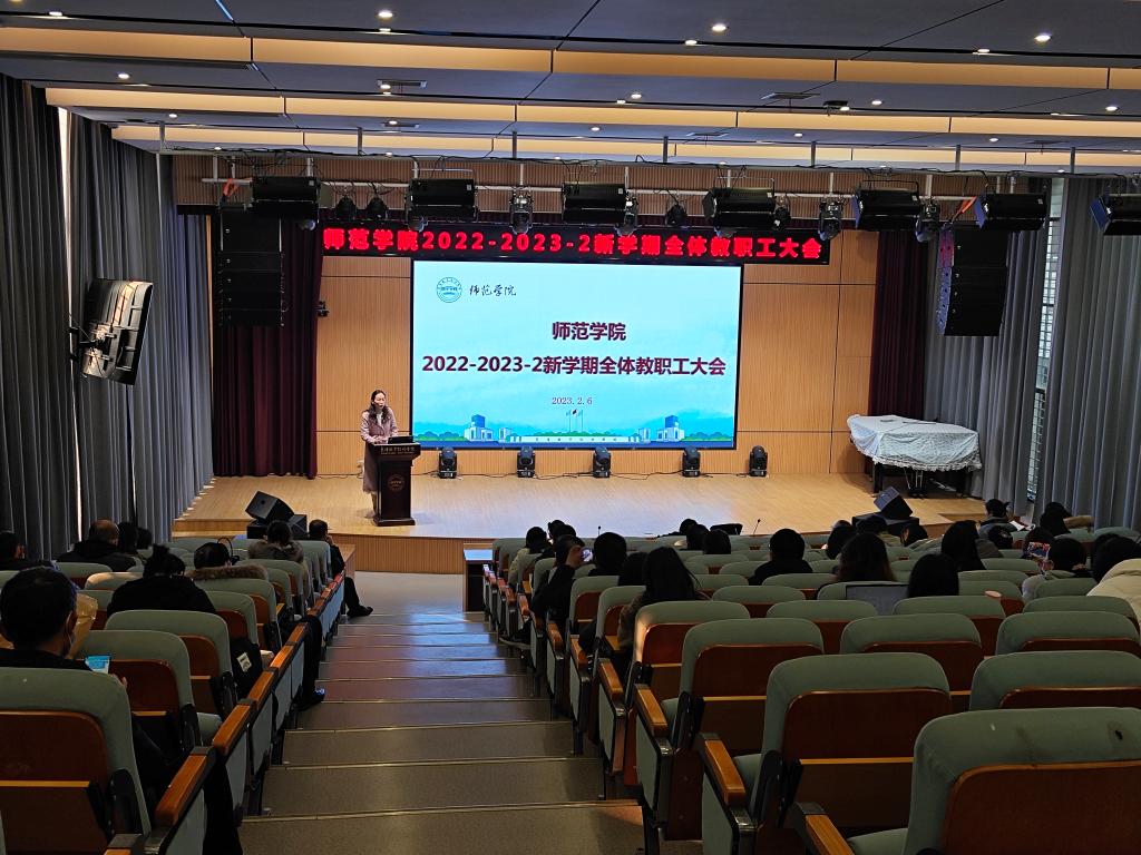 2月6日上午八点半,师范学院组织召开了2022—2023—2学期全体教职工大会。师范学院党总支书记张丹主持会议。党总支成员以及全体教职工参会。