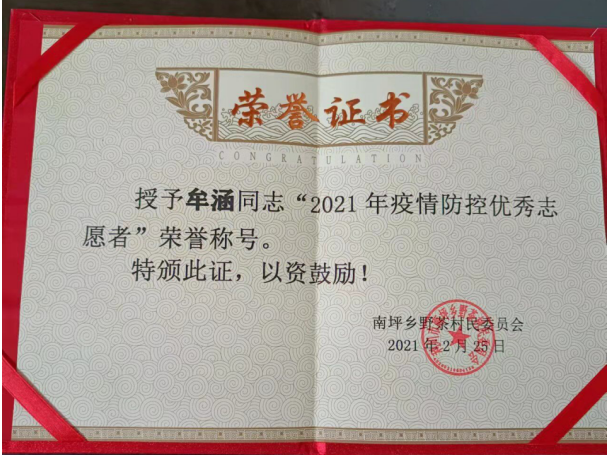 牟涵,建筑工程学院建筑工程技术专业2101班学生。他在新冠疫情突发,急需青年志愿者的时候毅然站出来,第一时间在家乡报名参加疫情防控志愿服务行动,肩负起村街走访、疫情检查站执勤、体温查登、分发物资等工作。在紧缺医疗物质的紧要关头,牟涵毫不犹豫拿出自己近半个月的生活费,捐赠了500个口罩及现金200元,虽然他在当地也是建档立卡、低保家庭,但他表示能尽一些绵薄之力回馈社会,是自己的责任,也是应尽的义务,这种感恩意识和大爱的传承,是青年学生优秀品质的体现,也是广大青年志愿者学习的榜样。