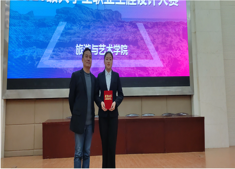 本次比赛以“激扬青春、憧憬未来”为主题。主题陈述环节,10名参赛选手结合PPT演示文稿,对自我作全面分析,阐述职业目标、发展路径、行动规划等。评委根据选手阐述现场提问,根据其综合表现打分。最终,旅游管理2001班向倩倩荣获一等奖。