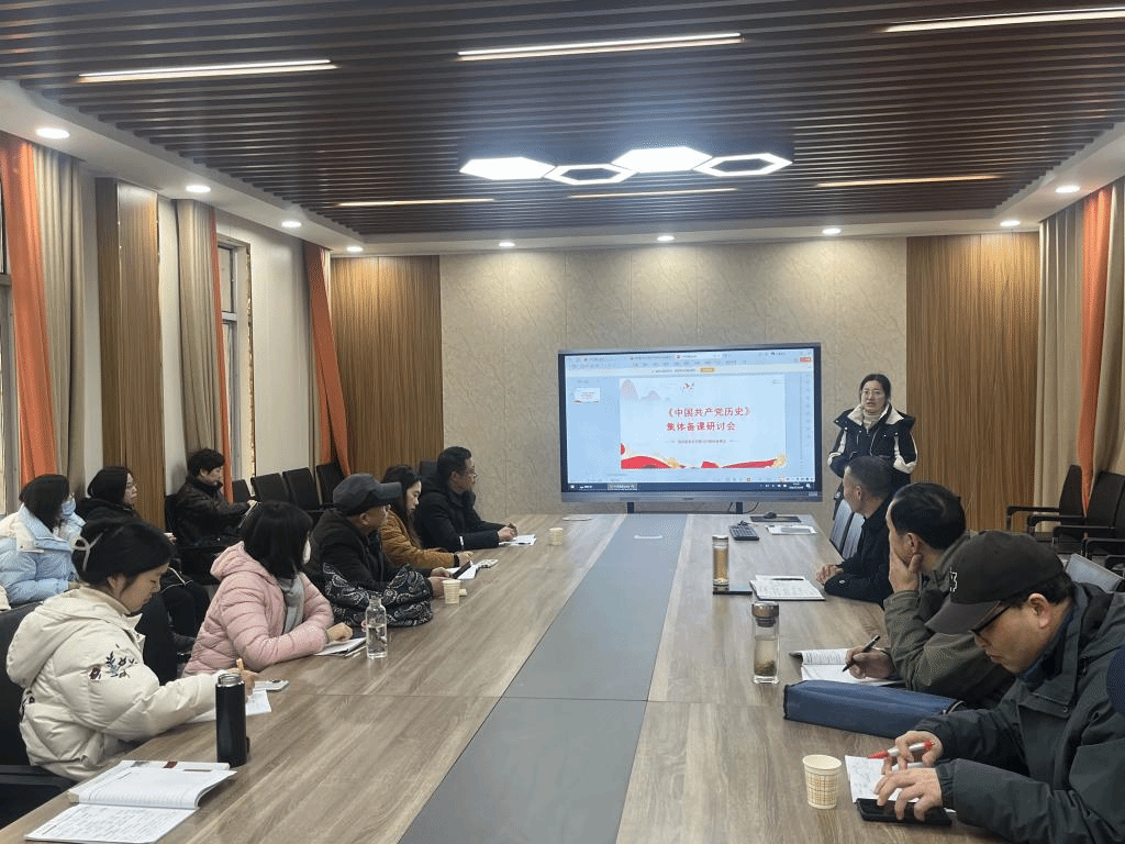 为推进三课改革,更好开展《中国共产党历史》课程的教学工作,提高党史课教学效果,12月28日下午,马克思主义学院在德馨楼107会议室开展集体备课研讨会。全体教师参加会议。