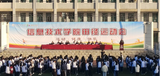 为进一步落实信息技术学院“两心四维”中健体魄、强身心的学生工作理念,引导学生树立终身健体魄、强身心的意识,营造良好的校园体育文化氛围,培育积极进取意识,信息技术学院于11月19日在主校区田径运动场举办了2023年秋季田径运动会。信息技术学院党总支书记汤才虎、院长王保成,学校教务处副处长周秀丽,公共课部体育研究室主任曹学,信息技术学院党总支副书记李晓龙,副院长曾鸿、高延伟,信息技术学院各科室负责人、全体行政人员、班主任及全体在校生参加了开幕式。