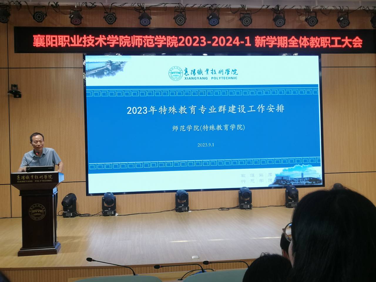 9月1日下午,师范学院在博学楼演播厅召开2023—2024学年度第一学期全体教职工大会。会议由副院长吴卫明主持。