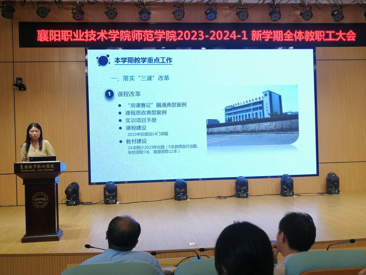 会上,师范学院教学副院长杨海曼通报假期相关工作,并对新学期的教学工作进行了安排和部署;学工副院长彭建设从学生管理“上好第一课”的角度,安排新学期班主任工作并对就业相关数据进行了分析。教科研副院长吴卫明强调了科研工作的重要性,提出教师要重视并积极主持科研课题。