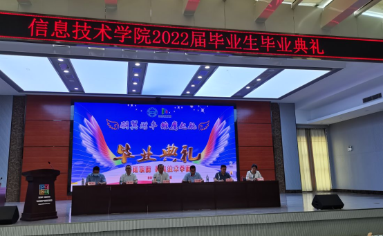 6月11日,信息技术学院2022届毕业生毕业典礼在智造工业中心报告厅隆重举行。全体院领导、各科室负责人、研究室主任、毕业班班主任和专业共建合作企业武汉美和易思数字科技有限公司襄职校区全体员工出席典礼。全体毕业生及家长通过线上线下互动,共聚“云典礼”,共享荣耀时刻。典礼由党总支书记汤才虎主持。