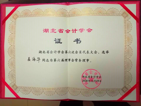 在12月19日举行的湖北省会计学会第六次会员代表大会上,经济管理学院教授姜海华当选常务理事,是全省高职高专院校唯一代表。