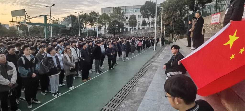 王群发表早训讲话。他以学校升本为契机,希望同学们珍惜时光,将努力学习变成一种习惯,把坚持变成一种态度,实现人生蜕变。他同时勉励全体青年学子,积极进取,从现在做起,为学校“圆梦双高、筑梦本科”贡献青春力量。