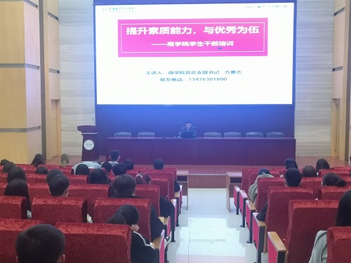 为全面提高商学院学生干部队伍的整体素质和工作能力,提高学生干部自身理论水平,加强学生干部队伍建设,4月1日晚,商学院在图书馆一号学术报告厅开展了学生干部专题培训。来自学生会、团总支及各班级共计100余名学生干部参会。党总支书记方基志作专题培训。