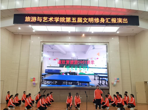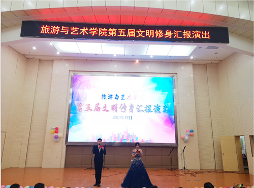 为巩固创文成果,加强“两室”文明建设,12月17日晚6点半,旅游与艺术学院在图书馆二号学术报告厅举行第五届“两室”文化节。后勤集团副总经理汪明群、学生公寓主管曹华,雅园一、三楼栋宿管阿姨,旅游与艺术学院全体学工人员、19级全体班主任和学生参加本次活动。
