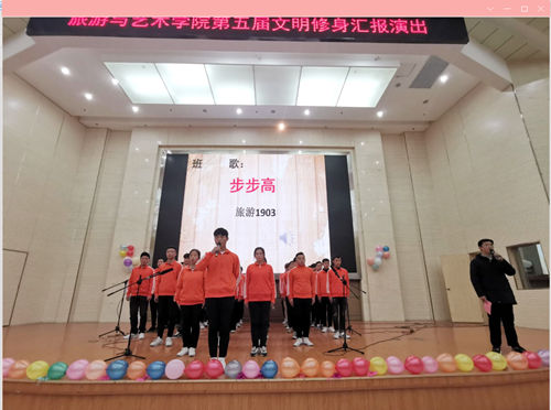 活动分班级管理成果汇报、班歌比赛、文明寝室文艺汇演三部分。各班和寝室代表以昂扬的精神风貌和大学生特有的活力做了精彩诠释。