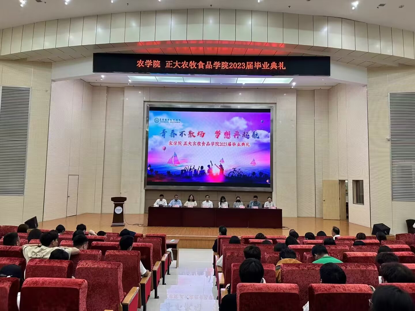 5月25日晚,农学院在图书馆二号学术报告厅举办2023年毕业典礼。正大集团农牧食品企业中南区食品事业资深总裁向卢晏、正大集团湖北区销售与零售事业人力总监杨玲,学校团委书记何娟、教务处考务中心主任杨曾,农学院 正大农牧食品学院党总支书记汪志涛、院长赵劲松,副院长陈杰军、杨莎,农学院全体教师以及300多名毕业生参加典礼。