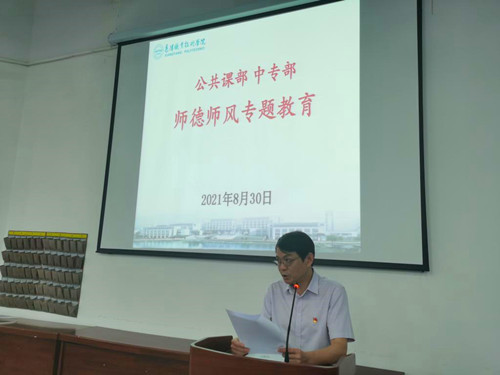 8月30日上午,公共课部(中专部)在明志楼一楼阶梯教室召开2021—2022学年第一学期全体教职工大会。会议由公共课部主任武雪慧主持。与会人员严格执行戴口罩、间隔而坐等防疫要求参会。