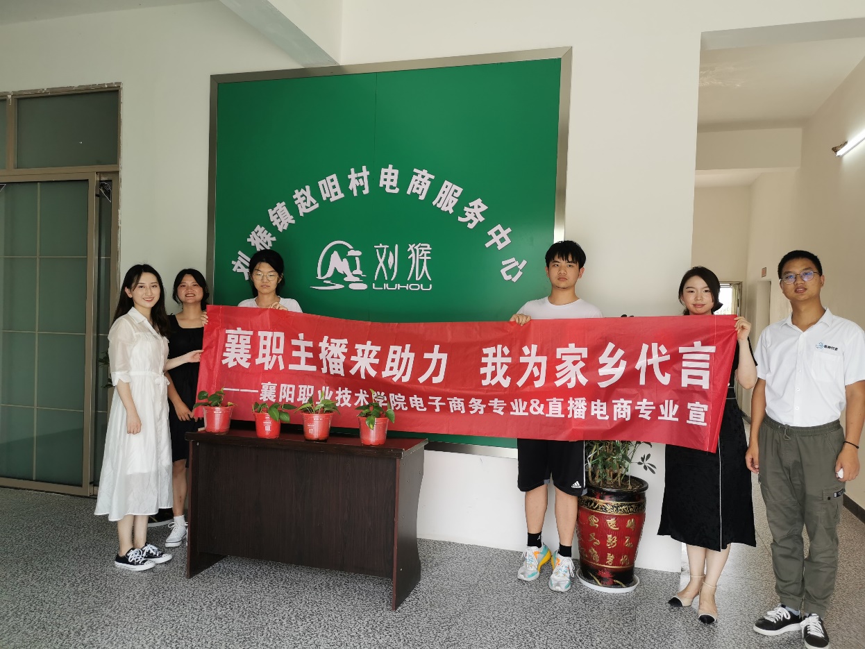 7月15日下午2时30分,电子商务专业师生一行11人到达宜城市刘猴镇赵咀村,在当地电子商务服务中心开展“助农直播”。
