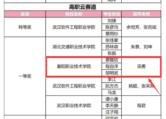 1月3日,华为ICT大赛2022—2023湖北省实践赛决赛结果公布,信息技术学院学生廖露欣等18人在云赛道、网络赛道中荣获一等奖1项、二等奖1项、三等奖4项。