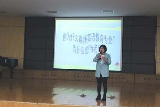 会上,英语教育专业教研室主任王玮从高水平专业——特殊教育专业群的人才培养目标切入,讲解了英语教育专业的发展前景、就业方向、一名高素质的融合教育英语教师的基本要求、专业群课程设置、实践教学、专业技能训练和英语竞赛活动等。