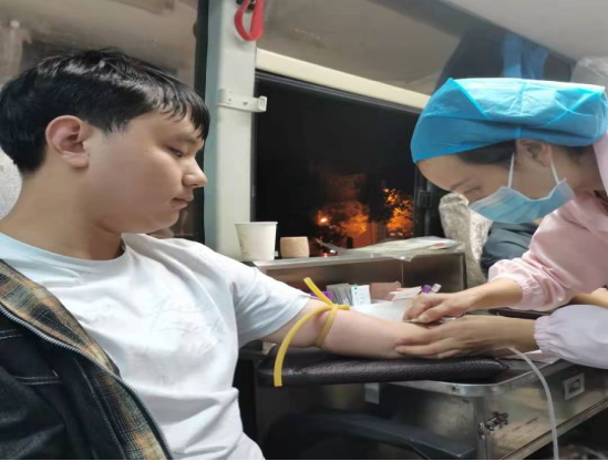 献血队伍中最多的还是2021级的新生们。他们当中,有的刚下课就直接来献血,有的趁课外活动间隙抽时间来献血,有的是刚参加完比赛来献血。计算机2107班的刘冰就是其中一位。他手里拿着“2021大学生语文文字能力大赛”一等奖的证书,怀里抱着书本,大跨步来到献血车前,填表、体检、上车献血,一切都有条不紊地进行着。“之前就一直想献血,看到学长们献血的热情 ,我被他们的义无反顾深深感染着,毅然加入到献血大军中,圆了我的梦。”刘冰说,这是他第一次献血。看着红色血液缓缓注入血袋,他的脸上露出了自豪微笑;看着献血证上光荣的记录,一种成就感油然而生。