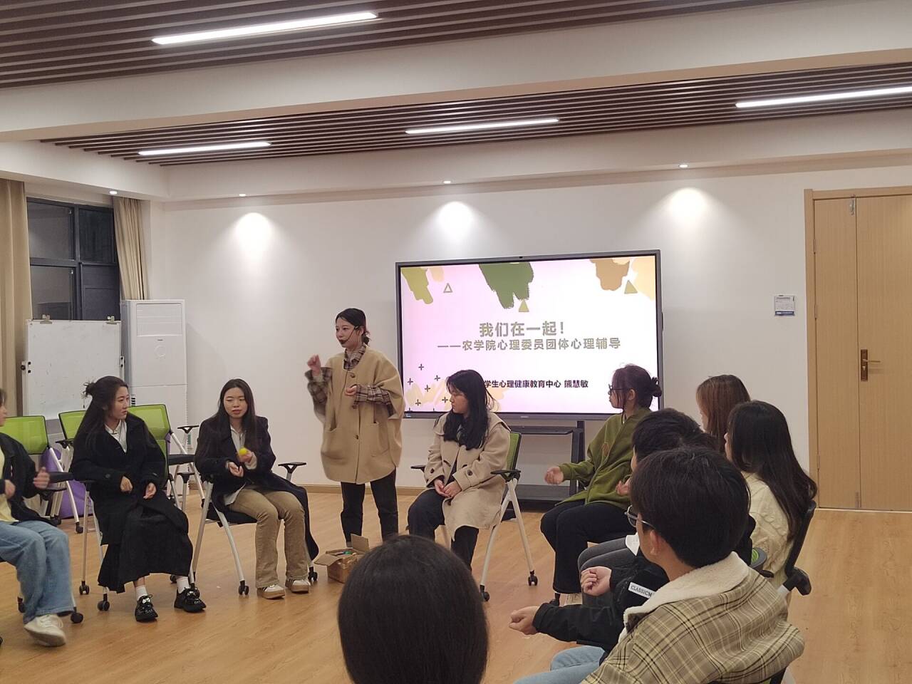 11月9日,农学院邀请心理中心老师熊慧敏,为全体心理委员开展团体辅导活动。此次团体辅导旨在加强农学院心理委员队伍建设,增强心理委员队伍的凝聚力和向心力,为农学院心理健康工作注入更多力量。