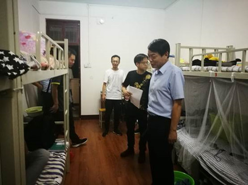 9月5日晚,公共课部(中专部)党总支书记陈建波、主任武雪慧带领学生科老师、新生班主任,深入学生寝室看望新生。