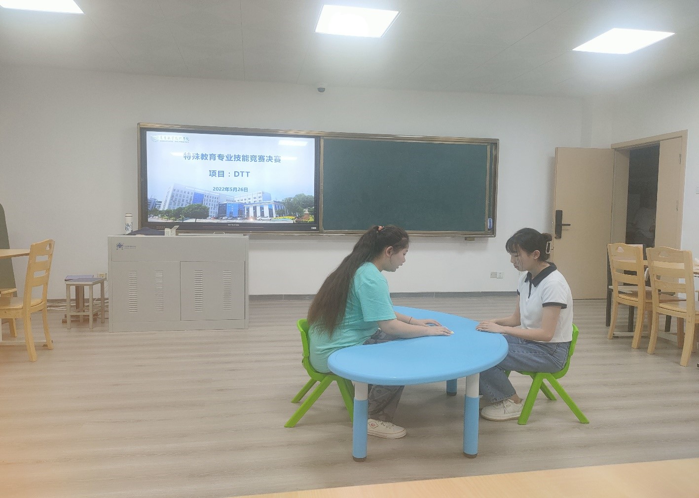 专业层面的决赛在5月份举行,分年级完成,最后,易子欣、杨珍珍、寇羽桐、陈依婷等同学分获模拟授课、DTT、即兴演讲、手语技能等竞赛项目一等奖。
