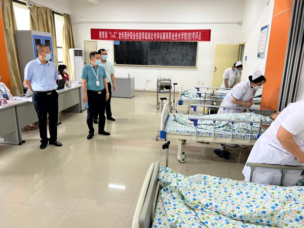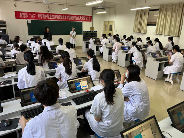 6月18日上午,医学院组织“1+X”老年照护(中级)职业技能等级证书考试,共100名学生参加考试。