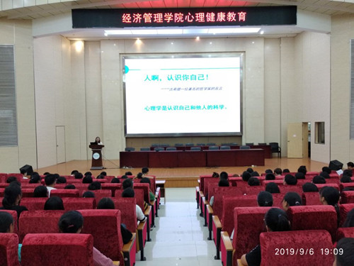 9月6日晚,经济管理学院在图书馆举办新生心理健康教育讲座。活动邀请学校心理咨询中心教师潘纬织主讲,主题为:新的旅程,从“心”开始。副院长葛峰、学工科长梁光源、心理辅导老师孔江红及全体19级班主任、新生参加活动。