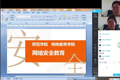 为增强学生安全意识,提高安全防范技能,5月21日,师范学院(特殊教育学院)以班级为单位,召开“网络安全教育”线上主题班会。