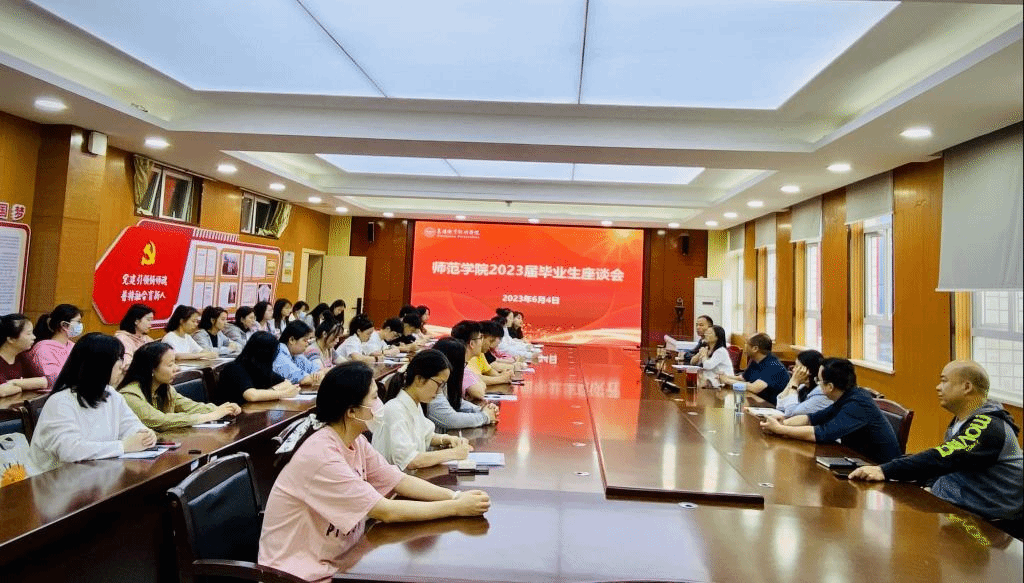 6月4日上午,师范学院召开2023届毕业生代表座谈会。学院副院长彭建设、杨海曼,各科室负责人与40名毕业生代表一起交流收获,展望未来。
