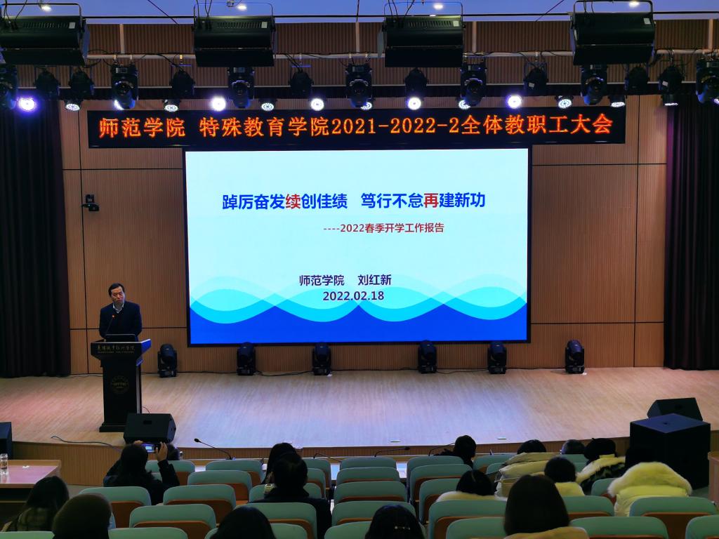 2月18日上午,师范学院在博学楼演播厅召开了新学期全体教职工大会。会议由院长刘红新主持。